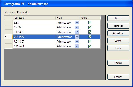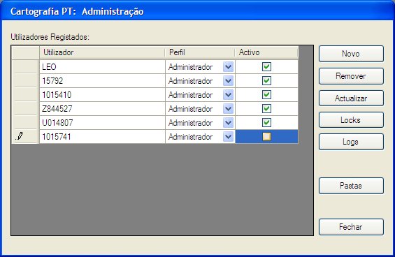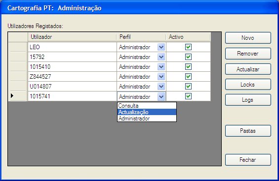 A Ferramenta de Administração permite gerir utilizadores, obter relatórios de atividade e definir pastas comuns para repositório de plantas dwg e quadtree.