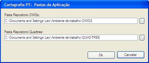 Clique no botão PASTAS para abrir a janela onde poderá definir as pastas de destino dos ficheiros planta e quadtree.