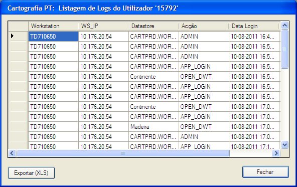 Selecione o utilizador e clique no botão LOGS para abrir a janela de filtro. Aqui é possível definir o mapa e qual o intervalo de datas da informação que procura.