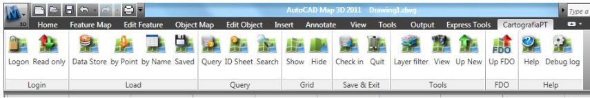 Os comandos da aplicação "CartografiaPT" estão disponíveis carregando o ficheiro "CartografiaPT.cuix" (comando "cuiload" no AutoCAD)